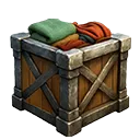 A firm crate packed with bolts of cloth, ropes, and woven mats. Crucial for insulation, coverings, and structural lashings.